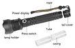 100000 lúmenes de alta y libre de Zoom: esta linterna LED utiliza último alta calidad XHP90 con un brillo de 100.000 lúmenes y tiene la más fuerte iluminación, capacidad Con tres modos de luz, puede cambiar libremente entre luz fuerte, luz subfuerte y luz intermitente SOS. Estirar la cabeza de la linterna led puede realizar el zoom libre de la luz.