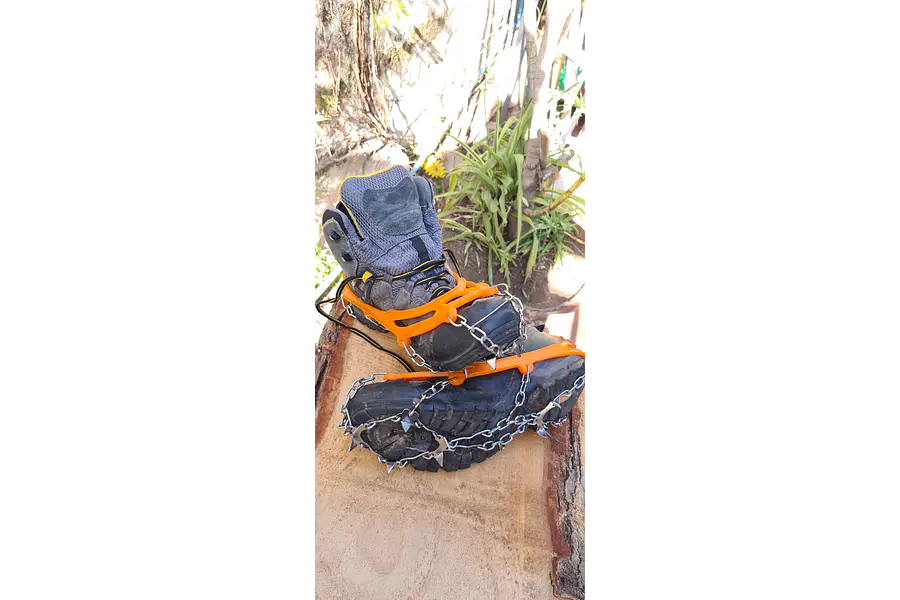 Es adecuado para terrenis inclinados , carreteras heladas,barro, entradas de hielo, trail running etc.