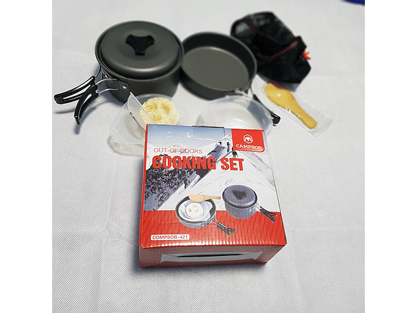 - SET OLLA COMPACTA + MINI COCINILLA + CUBRE VIENTO PLEGABLE
